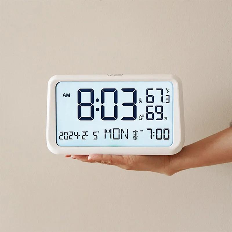 Minimalist Soft Light Digital Alarm Clock Large Screen Multifunctional Temperature Humidity Display Electronic Clock for Table
