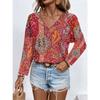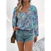 Plus Size Women's New Autumn Printed V Neck Long Sleeved Top