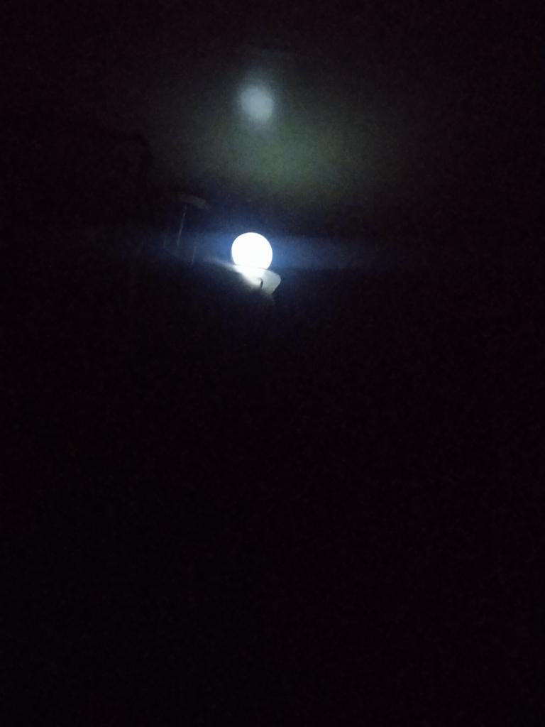 The full moon shines brighter than the battery lamp. It's impossible to cook in the kitchen. Poor visibility, twilight.