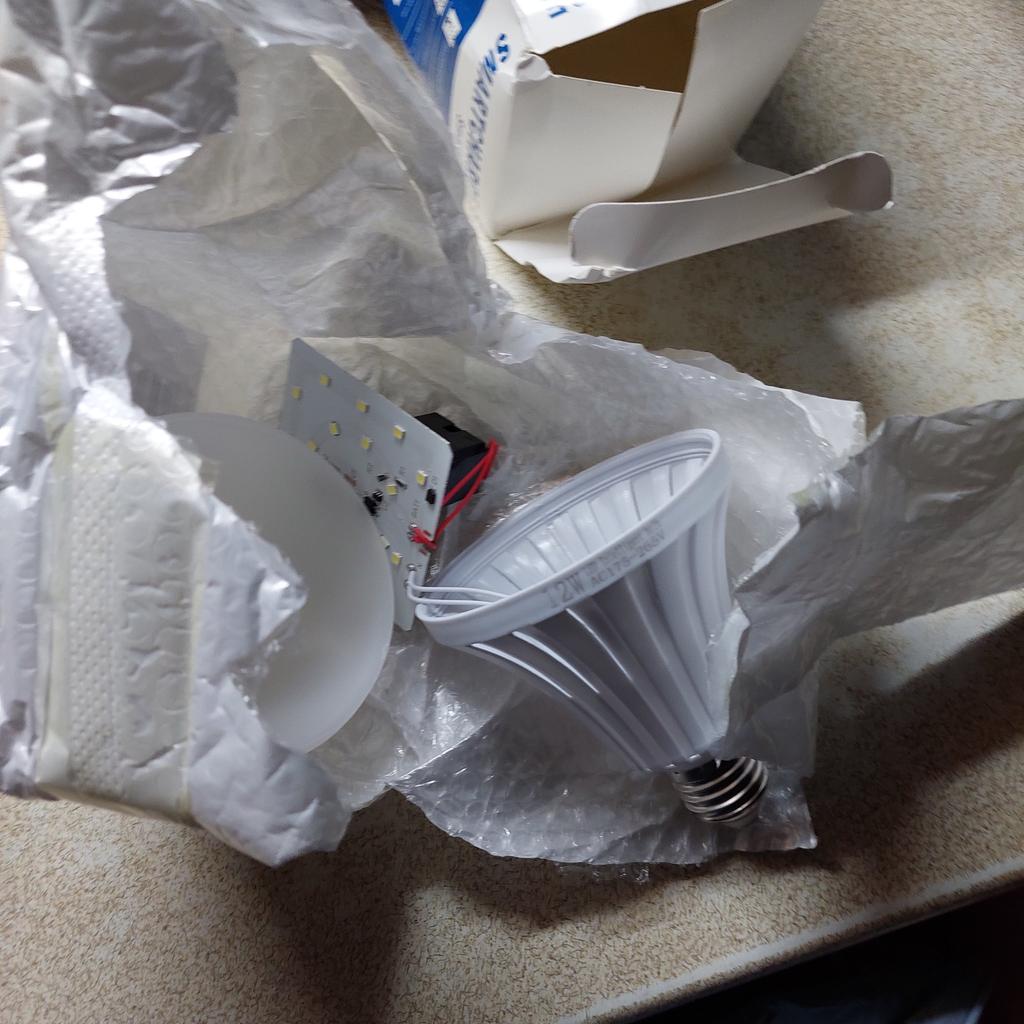All items except poses .3 , received well packaged and in good condition. Unfortunately one of the two 12-watt lamps arrived in a crumpled package and was broken. Does not work when turned on. Another lamp from the same package, after assembly, works normally. Pos.2 dumplings at 9 watts are packaged one by one and very well. Both are intact and both work perfectly. Please excuse if there are mistakes. I am very bad I see.. thank you for your work. What to do with a non-working lamp?