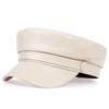 Hat Women'S Sky Pu Leather Navy Hat Flat Top Versatile Japanese Beret Octagonal Hat Trendy Girl