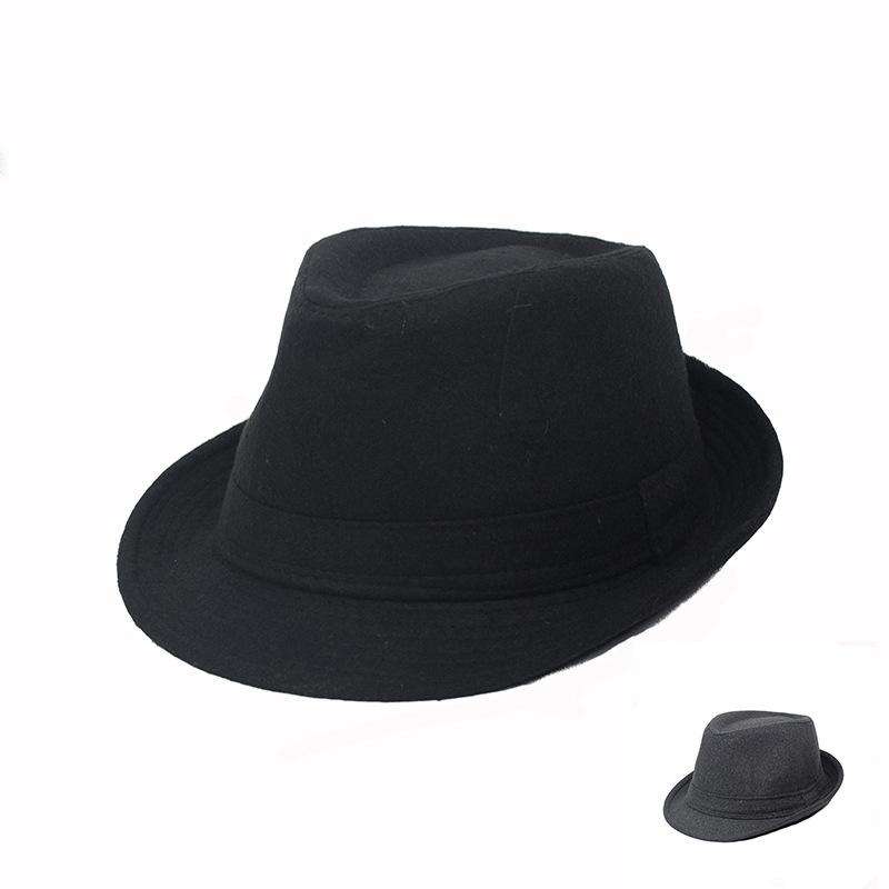 Top Hat Autumn and Winter Woolen Solid Color Small Edge Men's Jazz Hat Material Autumn and Winter Thermal Hat Old Man Hat Gentleman Hat