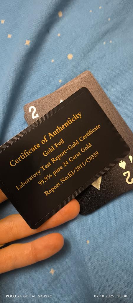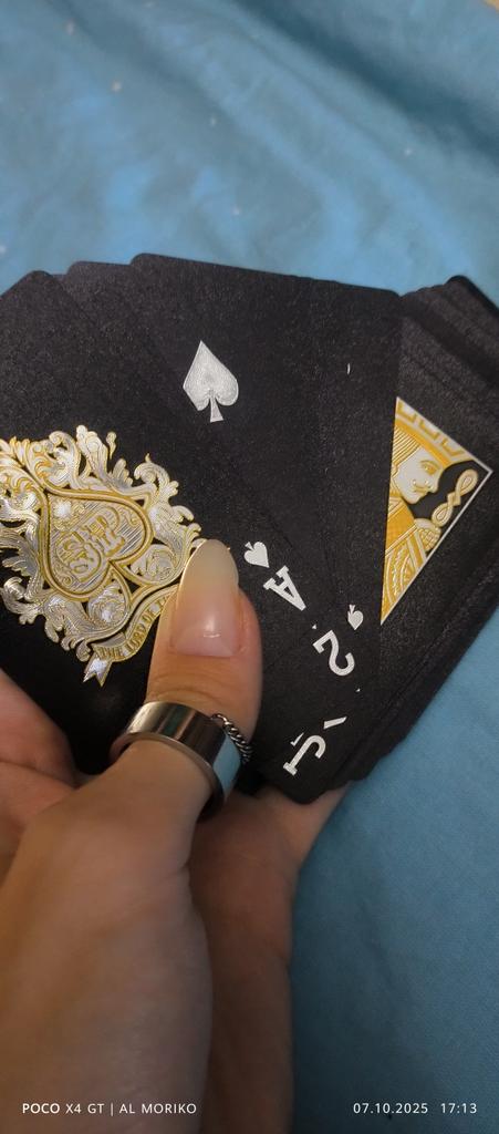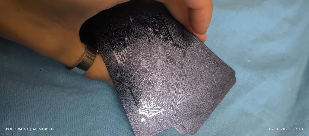 The cards are beautiful. They aren't just slippery, they're literally liquid. If there's even a slight tilt on the table, the deck won't stand up. Shuffling them is a pleasure, with practically no sticking compared to ordinary cards from a kiosk.