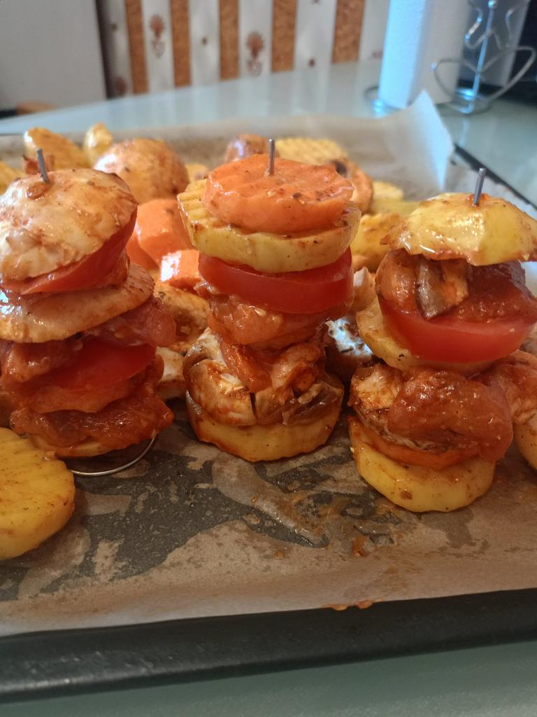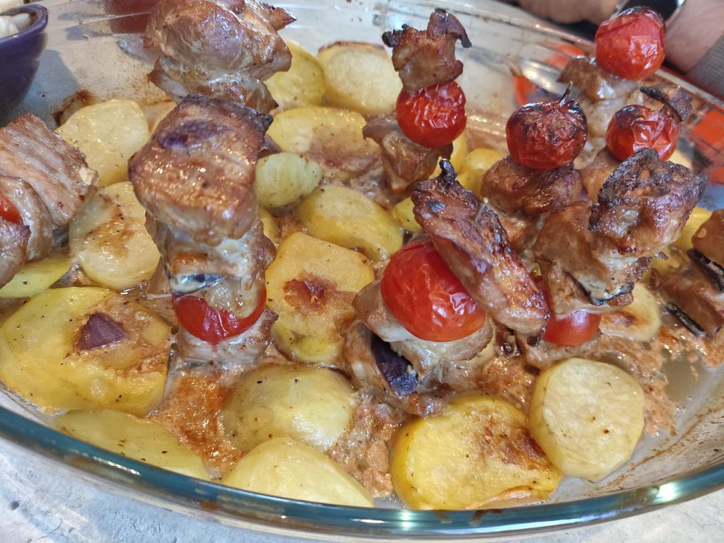 We tried the skewers, although they were very thin and the meat didn’t hold well, but alternating them with vegetables, everything baked fine!