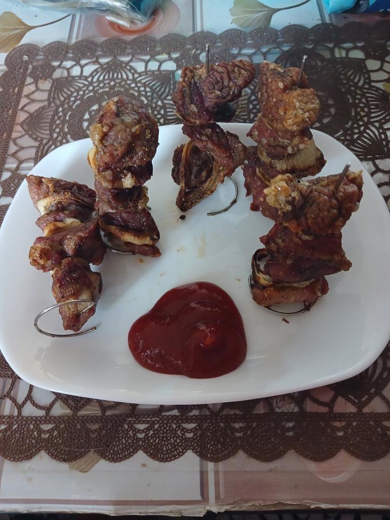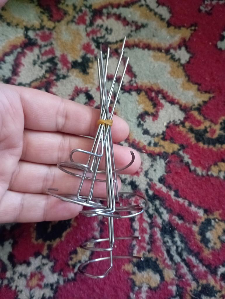 The skewers are not bad, but if they were longer, it would be better. Two small pieces of shashlik fit on one skewer, I gave 4 stars because the skewers fall over after the meat is threaded onto them.
