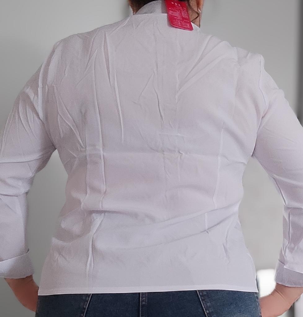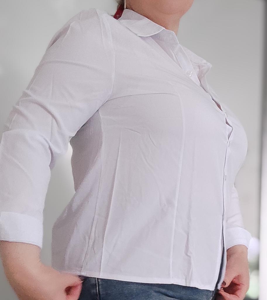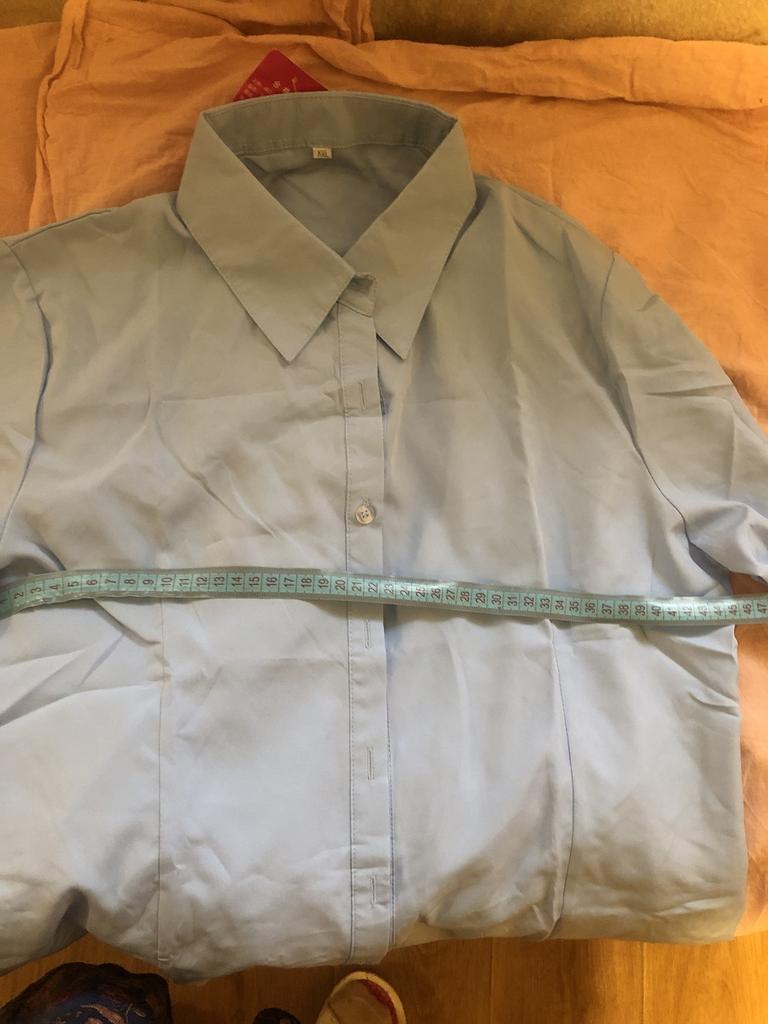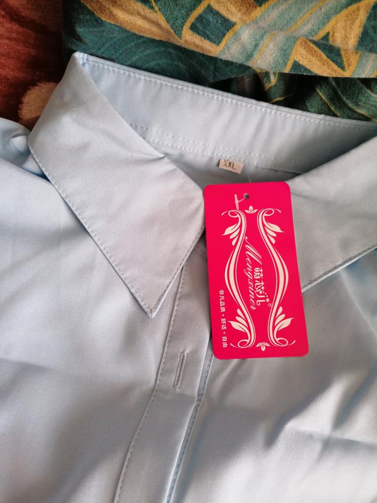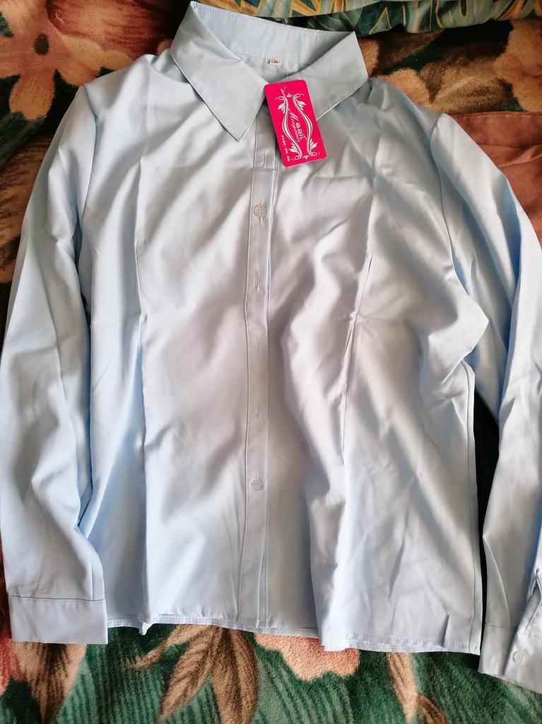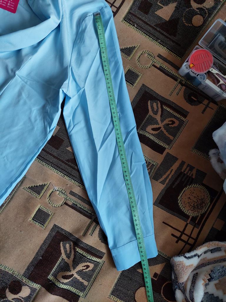Excellent blouse, fit to size for size 50-52, very beautiful color, delicate blue.