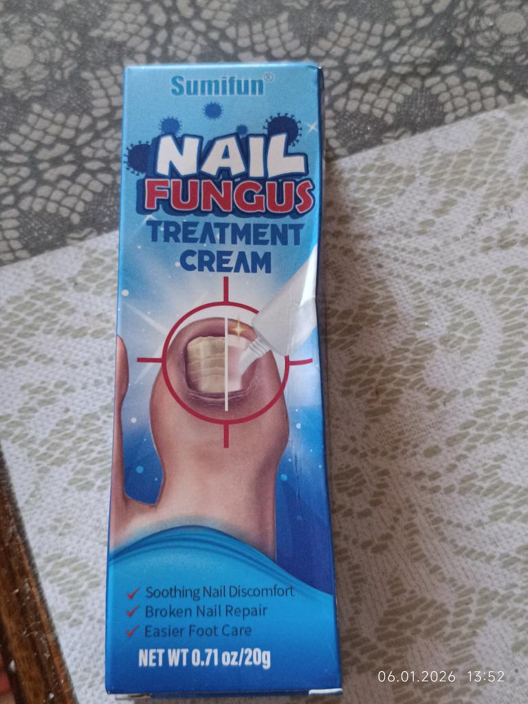 Cream for the nails,can be used on your feet where most of the problems occur.If you have funglal infection or you want just to strengthen or make just healthy your nails then this cream is for you.Wash and dry your feet and then apply small amount on your nail plate in the morning and the evening.Main ingredient Chlorhexidine Acetate.Delivery took 28 days to Ireland.Happy Shopping!