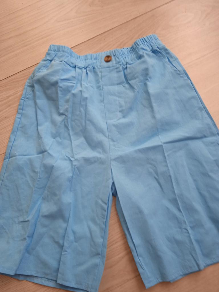 Shorts made of fairly thin material, fabric type staple, straight-leg trousers