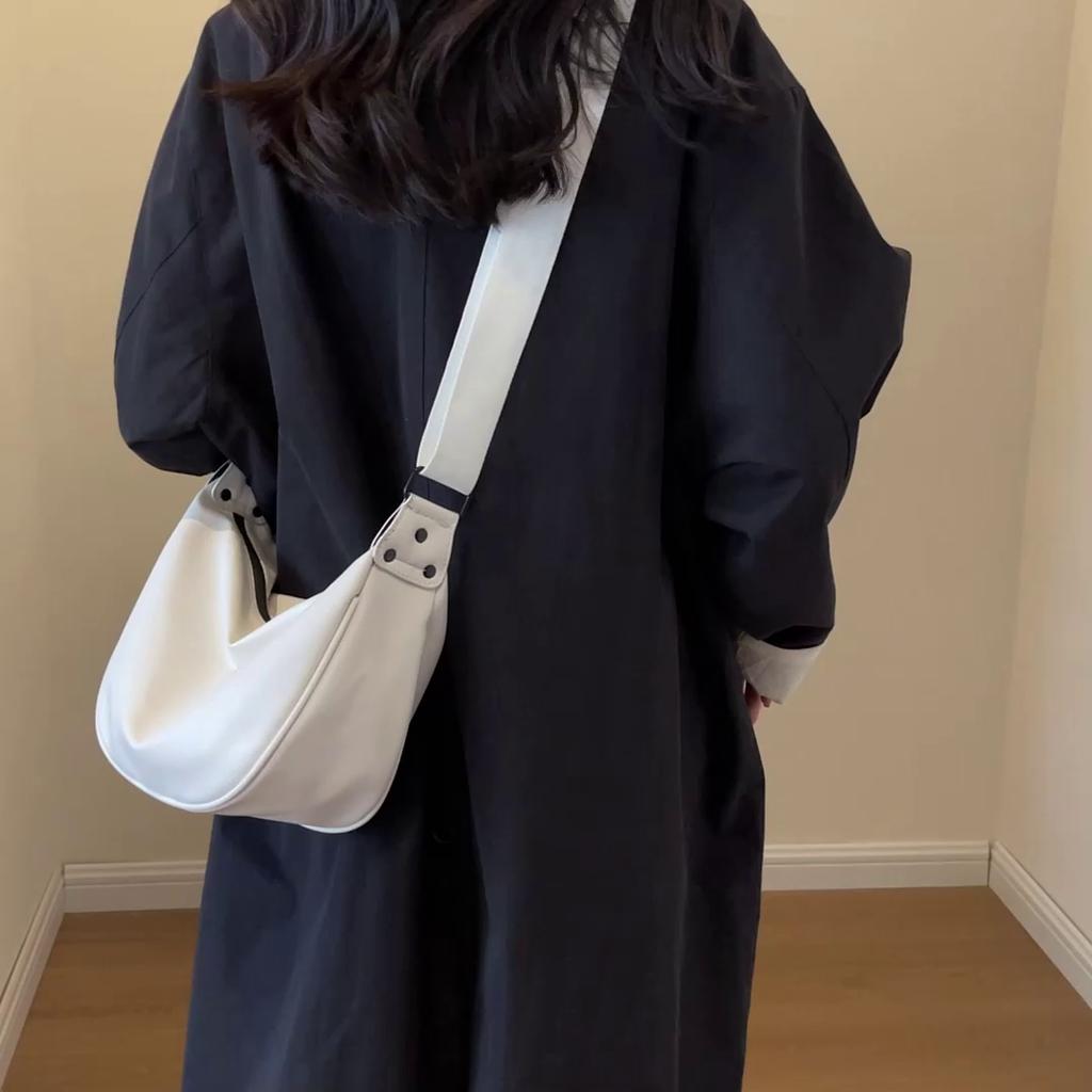 Women Vintage Solid Color Flap Small Saddle Shoulder Underarm Bag Fashion PU Leather Casual Crossbody Bag