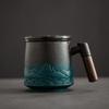 Ceramic Aesthetic Strainer Tea Cup Mug with Lid Luxury Coffee Cups Large Office Tea Water Unusual Japanese Vintage Original Mugs Wood Handle Gift