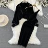 Lazy Style Lace Up Nail Bead Knitted Cardigan Set Women's Sweater Jacket Slimming Camisole Dress Two-piece Set Thick