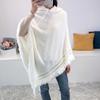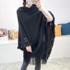 2023 Women's Hooded Tassel Cape Shawl - Plus Size, Solid Color, Loose Fit
