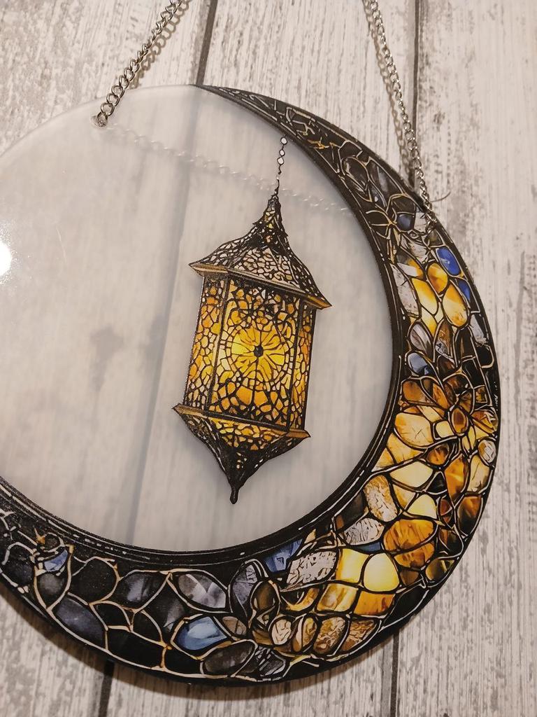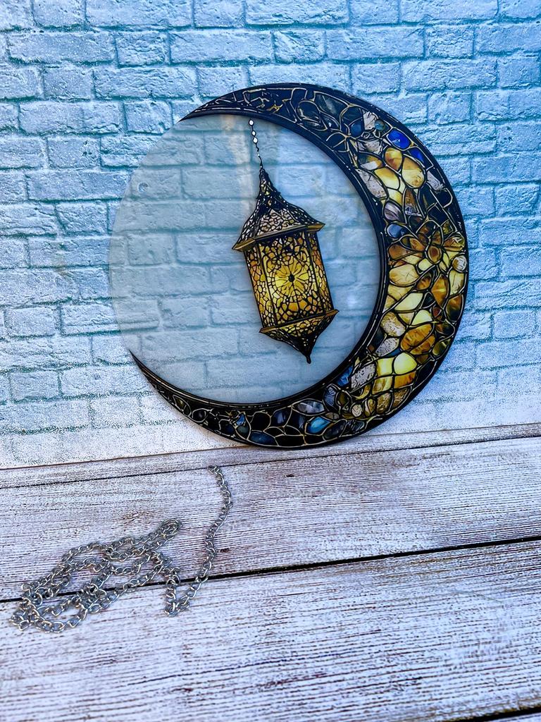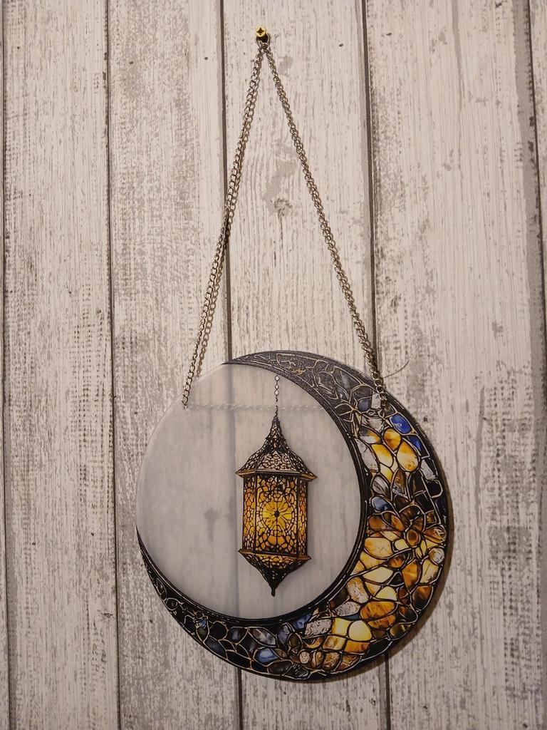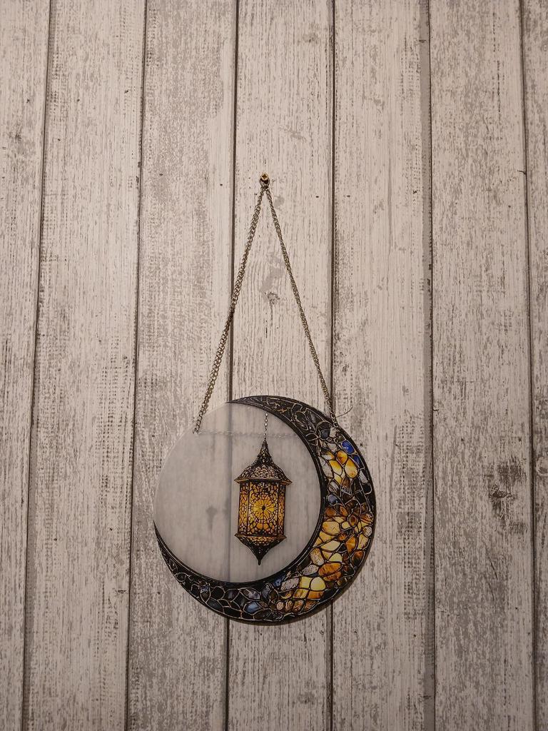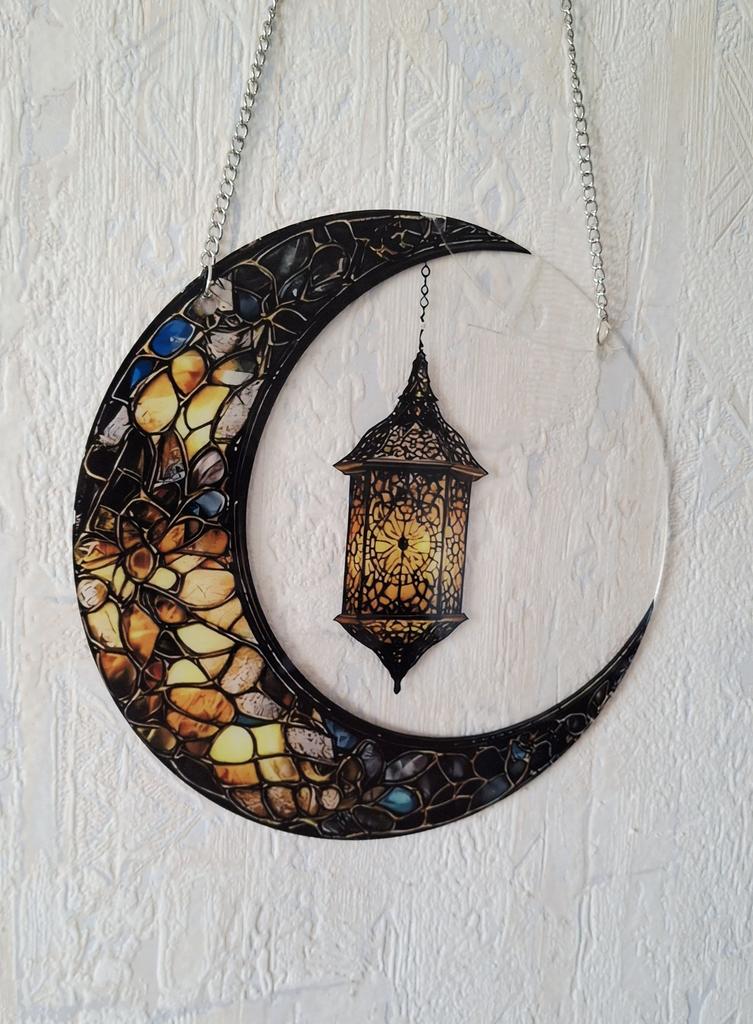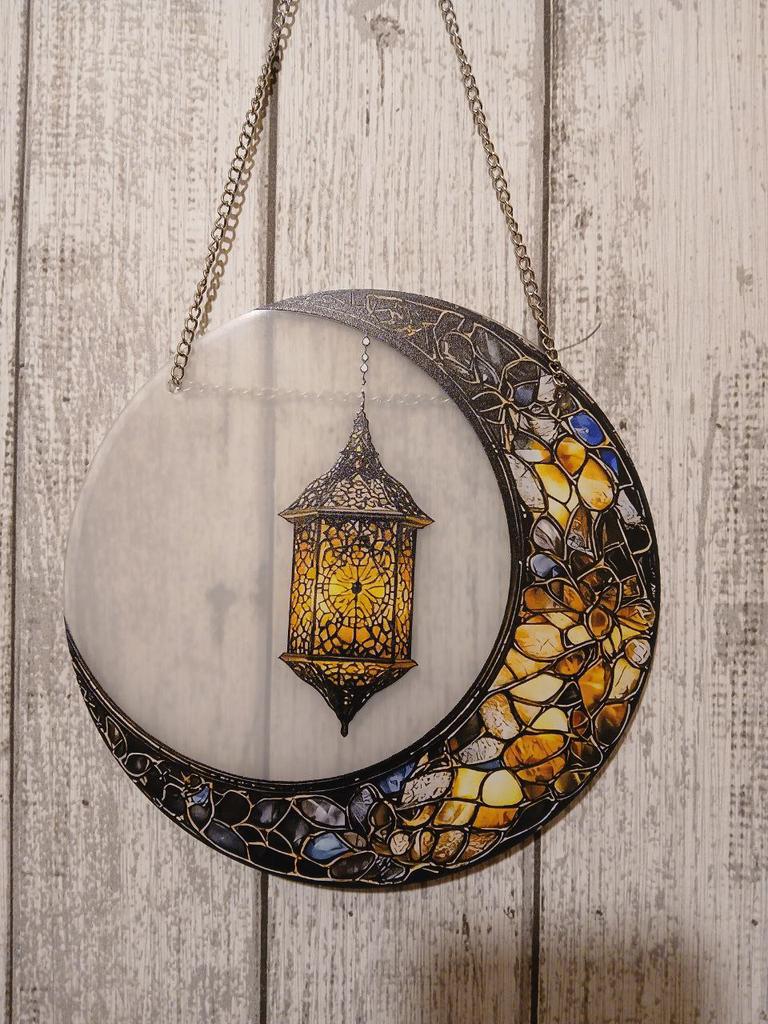 Illuminate your space with this stunning Hanging Moon Ornament. Crafted from high-quality acrylic, this sun catcher emits a charming glow when hit by natural light, adding a touch of elegance to your interior. The intricate moon design makes it a sophisticated addition to any room, perfect for those seeking a unique decoration.