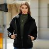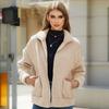 Women's Fall and Winter Long-sleeved Cardigan Zipper Plush Splicing Ladies Short Jacket
