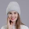 Korean Style Rabbit Fur Knit Hat for Women - Fashionable Autumn/Winter Headband with Earmuffs