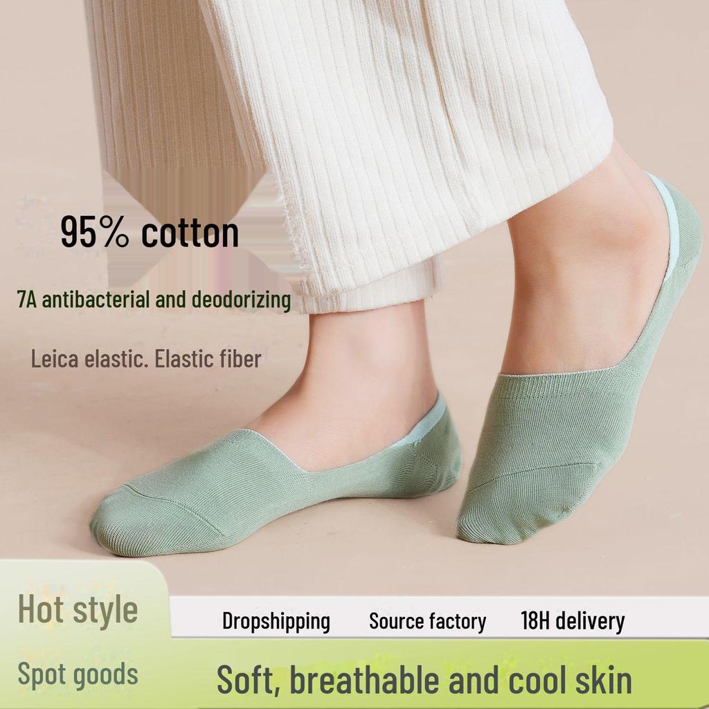 Women's Thin Spring-Summer Deodorant Cotton Socks: Antibacterial, Sweat-Absorbing, Solid Color, Invisible, Short, and Boat Socks.