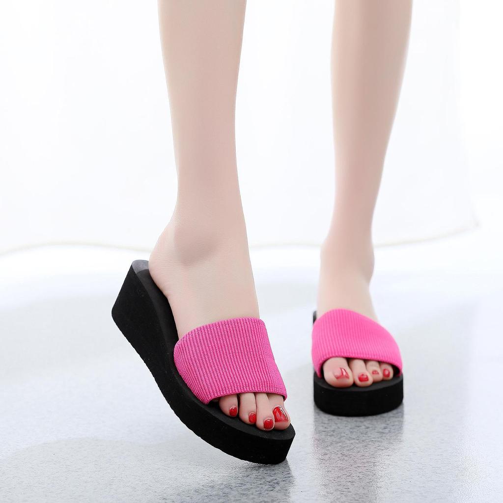 Experience comfort and style with these platform wedge one-strap sandals, perfect for a day at the beach or casual outings. The upper is crafted from soft cotton, providing breathability and comfort. The durable EVA sole offers excellent cushioning and non-slip traction, ensuring stability and safety on various surfaces. Inside, the mesh lining enhances airflow, keeping your feet cool and comfortable throughout the day. Enjoy a blend of fashion and functionality with these versatile sandals.