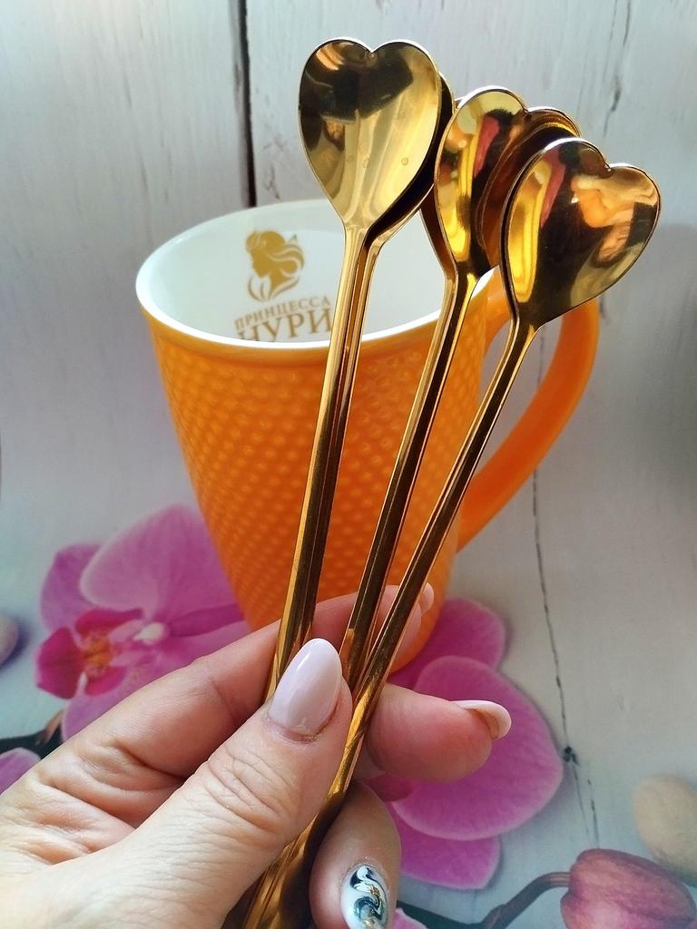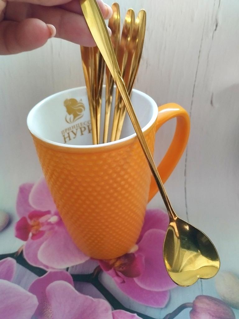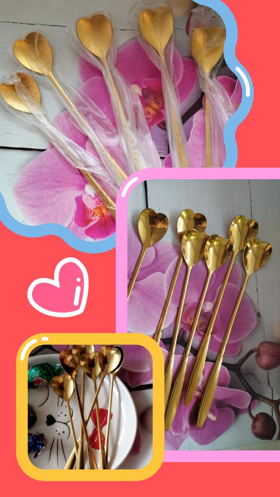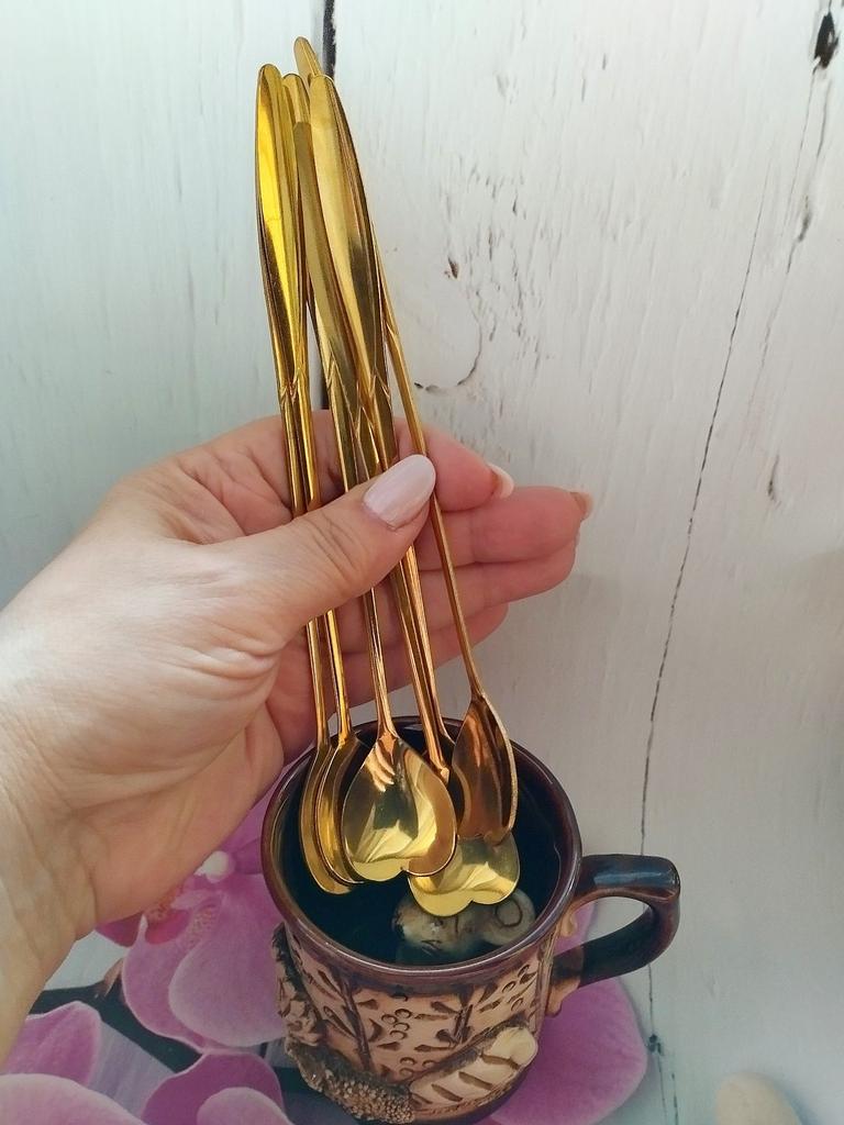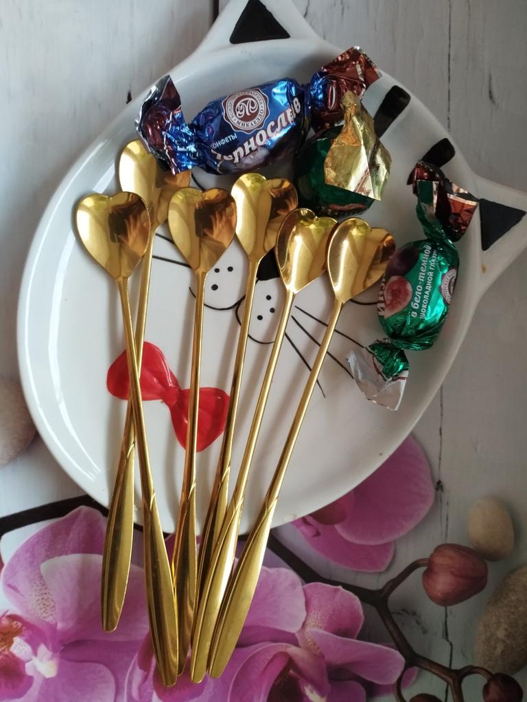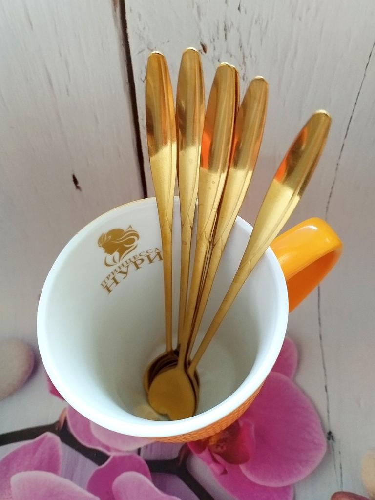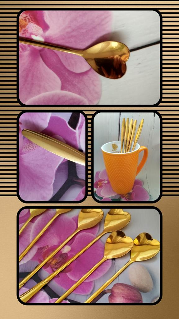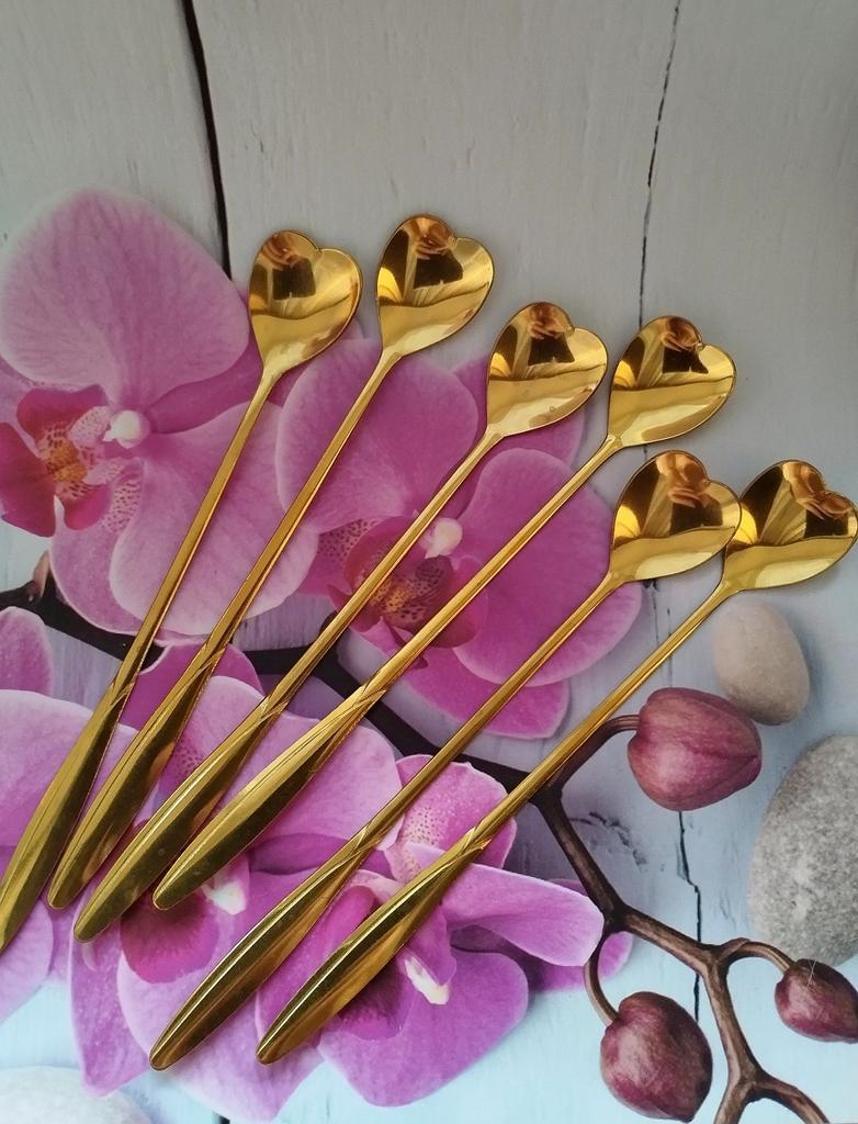6pcs Gold Flower Stainless Steel Tea Spoons Set Coffee Spoon Honey Dessert Ice Cream Scoop Long Handle Teaspoon Cafe Tableware