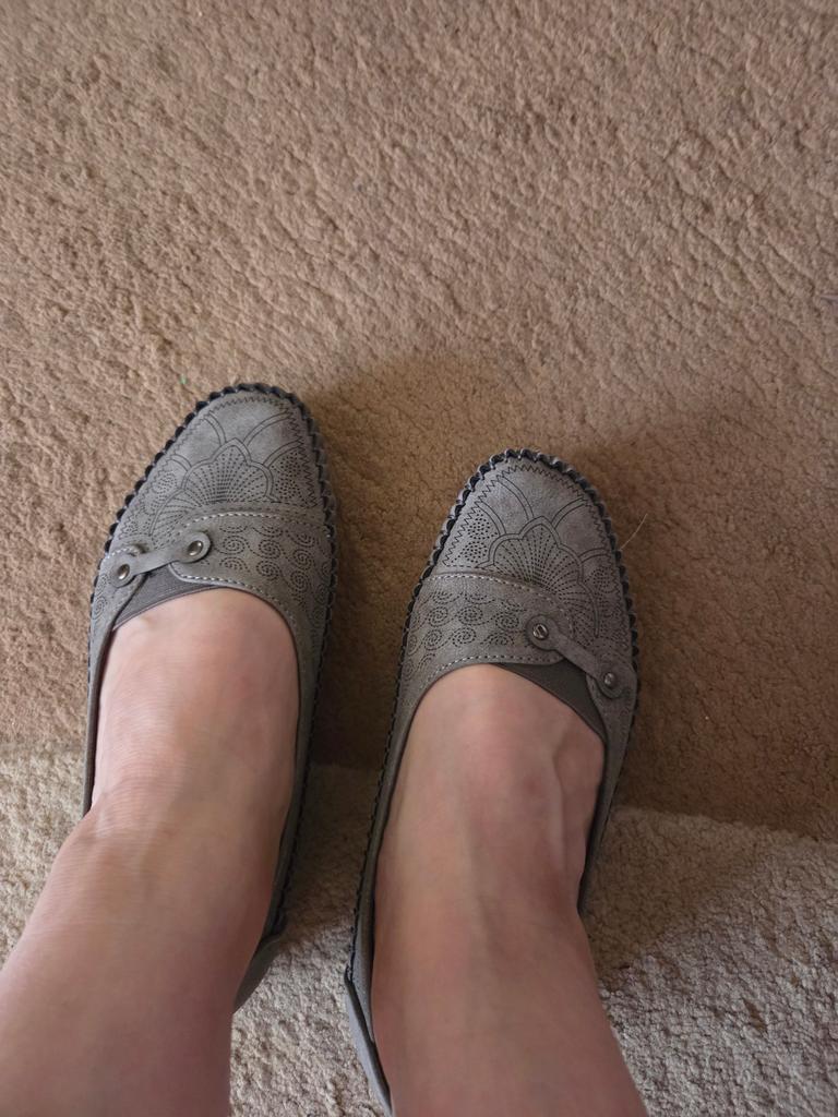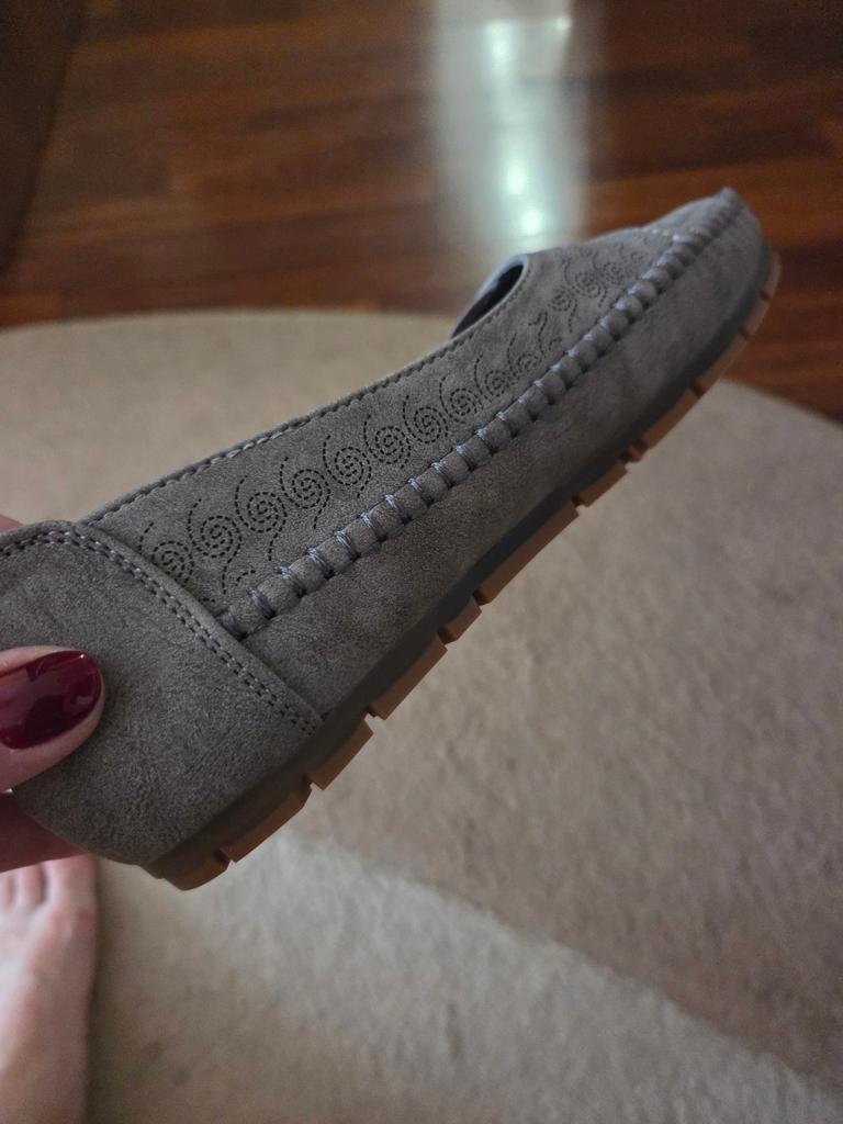 Moccasins are comfortable, but the rivet in one digs in from the inside when there is pressure from the foot. The upper material in the photo is better, but in reality it has a grayish sheen. Resembles elephant skin