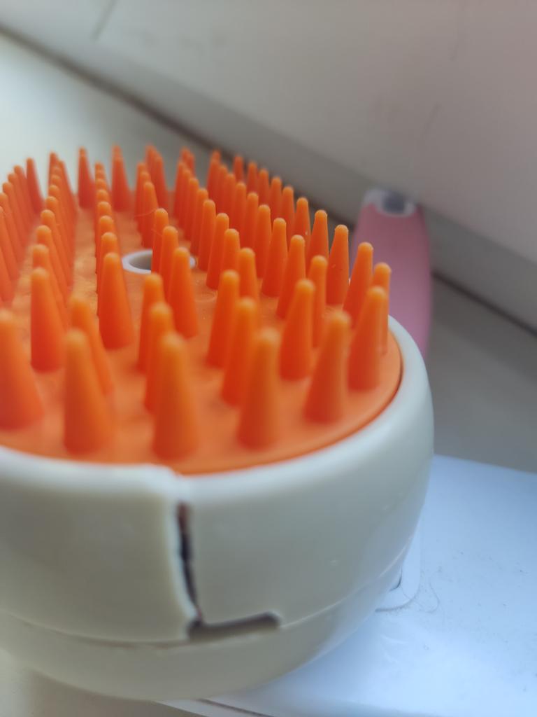 the product arrived whole, good, but it didn't suit us, I have 4 kitties of different breeds and none of them were delighted. Not practical, the brush is hard, it removes wool poorly.