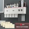 Magnetic Adsorption Inverted Toothbrush Holder Wall-mounted Double Automatic Toothpaste Dispenser Rack Bathroom Accessories