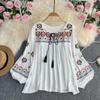 - 【Dimensions】: Length 56cm/22.05inch, Bust 108cm/42.52inch, Sleeve 54cm/21.26inch. Enhance your wardrobe with this versatile embroidered bohemian blouse