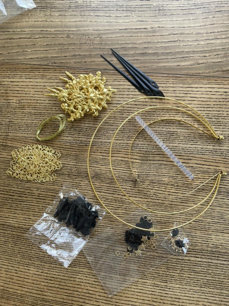 This is a construction kit! It's not a crown. All parts are separate in bags. No instructions, no assembly explanation, no photos. Wire and rod for a glue gun for assembly. And you might not have a glue gun. And the color of the parts does not match the selected sample. Disappointment