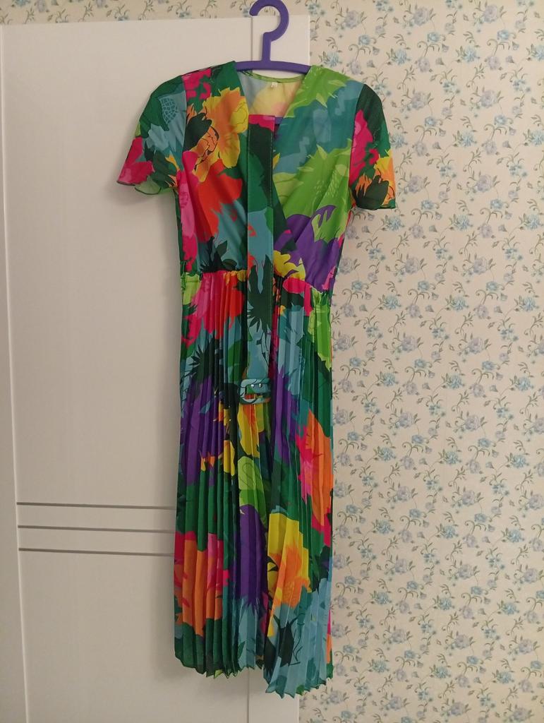Women's Summer Printed Wrinkled Mid Length Short Sleeved Casual Dresses