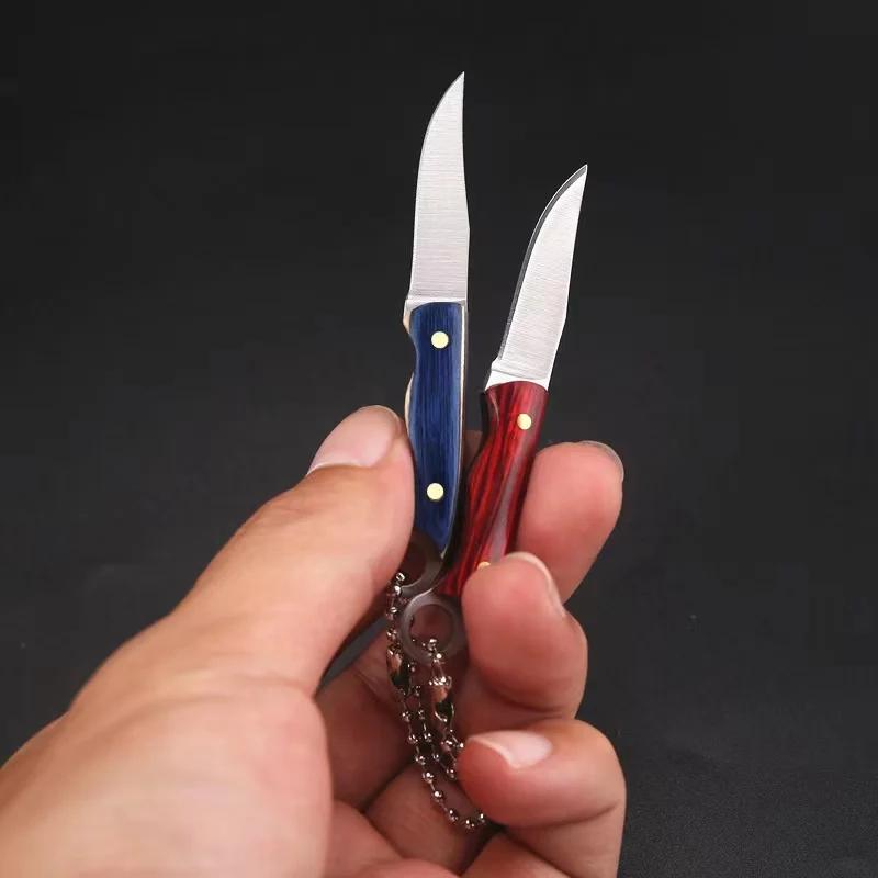 Mini Ring Colorful Wood Small Straight Knife Small Claw Pocket Keychain Open Box Package Small Gift Artifact
