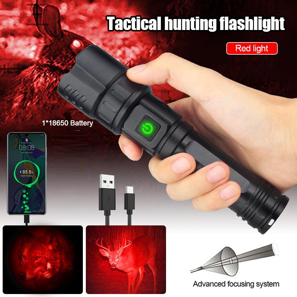High Power Military Tactical Green Hunting Flashlight 10W 1800lumens 5 Lighting Modes LED Torch Zoomable Camping Hand Lamp