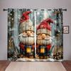 Christmas Gnome Curtains 2 Panels 3D Print Sun Block Winter Holiday Decor Bedroom Living Room Snow Lantern Pattern Cozy Festive