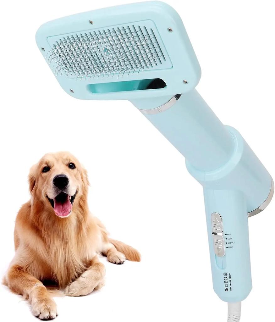 2 In 1 Pet Hair Dryer Brush 3 Gear Adjustable Temperature Dog Hair Dryer with Slicker Brush Pet Grooming Dryer for Cats Dogs
