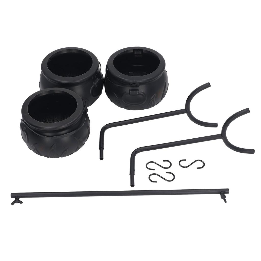 Halloween Cauldron Decorations ABS Iron Flame Pattern Mysterious Black Witches Candy Bucket for