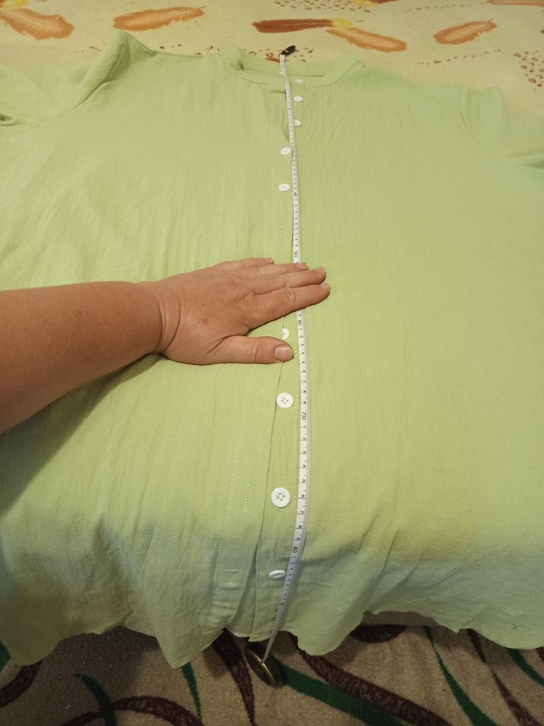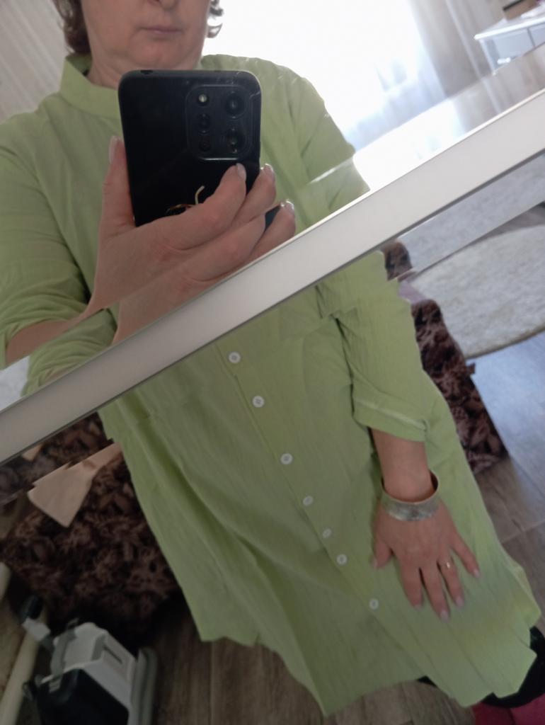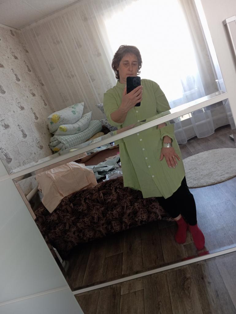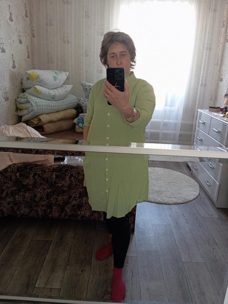 The material is thin, soft, wrinkles. Good tailoring. For my size 48-50 I took XL. Too big, should have taken L. Maybe it will shrink after washing. Mustard color.