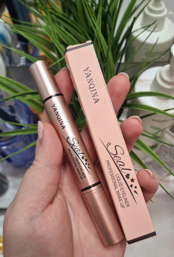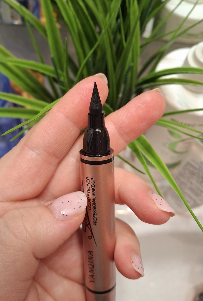Eyeliner Double-sided, with a brush on one side and a stamp on the other. The eyeliner is moderately liquid, the lines are even and clear. Does not cause irritation Waterproof, lasts all day Dries quickly on the skin and does not smudge. Eyeliner with different stamps to choose from