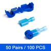100pcs/50pairs T-Tap Wire Connectors, T Tap Electrical Connectors Quick Wire Splice Taps and Insulated Male Quick Disconnect