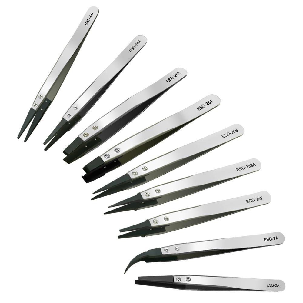 LEFAVOR Anti-Static Plastic Tweezers Stainless Steel Industrial Replace Tweezers Insulated Straight/Curved Tip White Tweezers