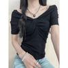 Dopamine Whitening One-shoulder T-shirt Women's Summer Slimming Kink Pleated Design Short-sleeved Temperament Top