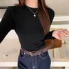 Apricot Round Neck Brushed Thickened Long-sleeved Bottoming Shirt for Women In Autumn and Winter, Warm and Slim Inner Layering, Basic Versatile Top