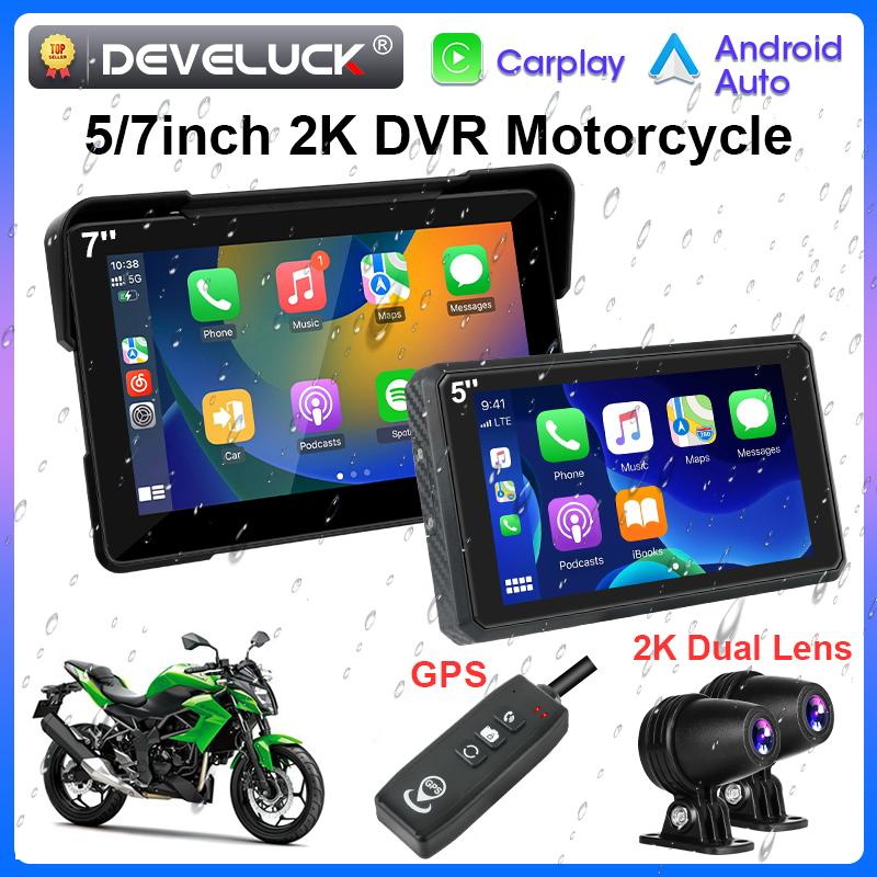 5/7 Inch Motorcycle 2K DVR IPX7 Waterproof GPS Navigation Recorder Wireless CarPlay Android Auto Display Screen Bluetooth Moto