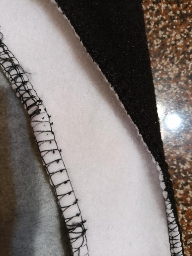 Look at the seams on the face. You might like it. And here from the inside, the lower thread just broke, and we went on sewing. And where you have 20% cotton, there isn't even one percent. It's not good to treat customers like that.