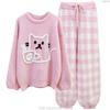 Wearing Soft Pajamas Women's Autumn and Winter Sweet Japanese Style Fleece-lined Thickened Cartoon Cat Two-Piece Home Clothes