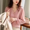 Fashionable Knitted Women's Autumn Wear Micro Transparent V-neck Long Sleeved Top T-Shirts Women’s