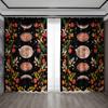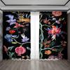 2PC Home Decoration Curtains With Black Background Flowers And Rod Pocket Curtains, Kitchen, Coffee Shop, Living Room, Balcony