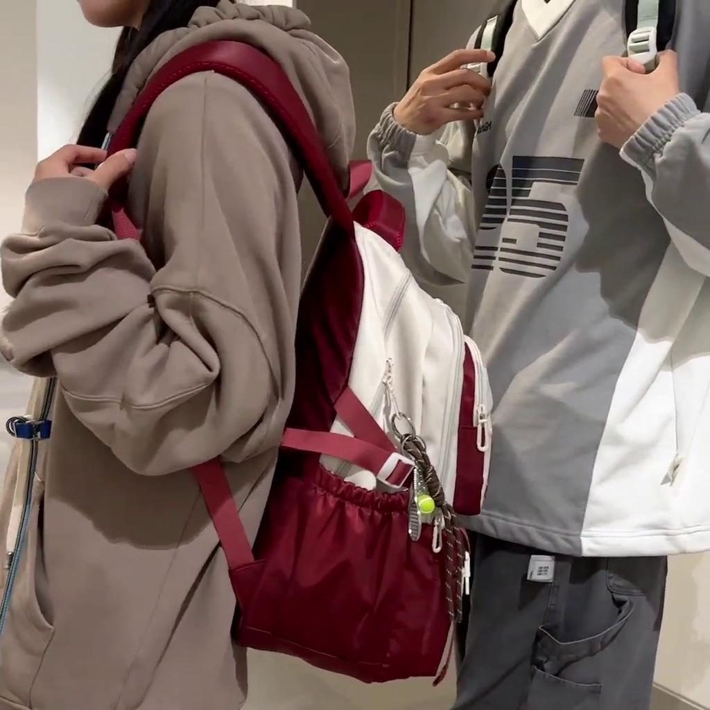 Color Block Schoolbag Middle School Student Backpack Men Women Large Capacity Backpack