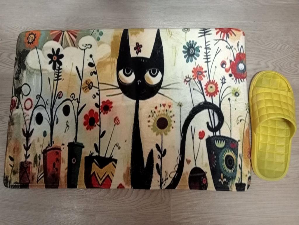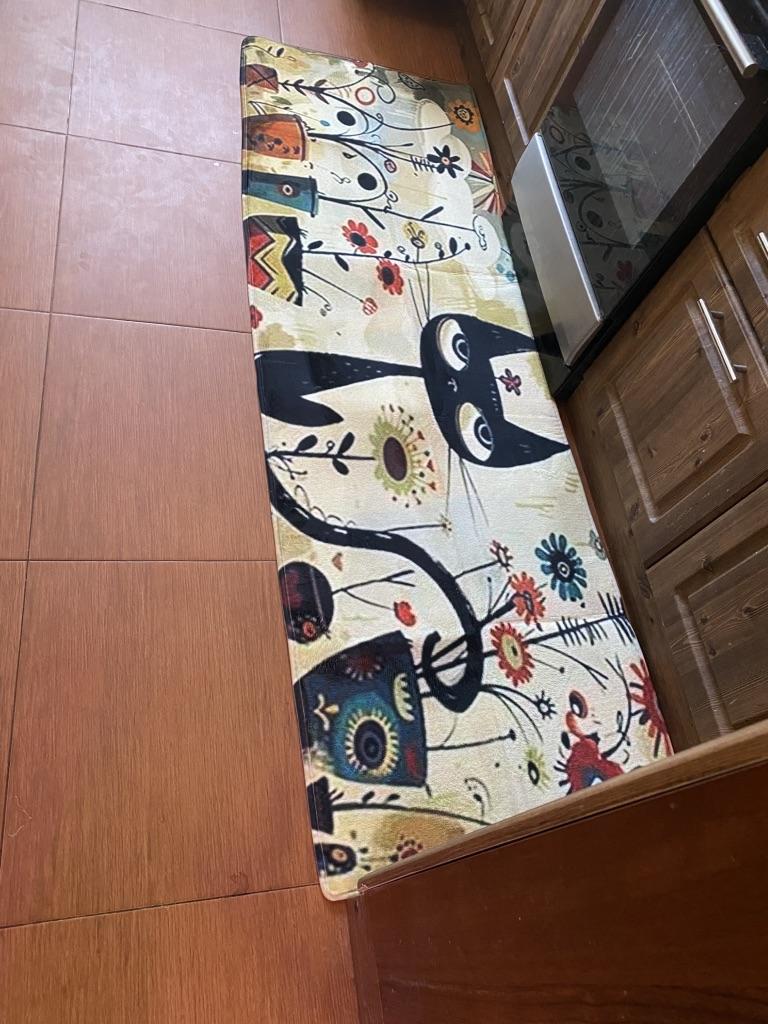 1Pcs Anti Fatigue Kitchen Rugs,Floral Black Cat Print Waterproof Non-Slip Thick Cushioned Kitchen Mat Heavy Duty Comfort Standing Mat for Kitchen