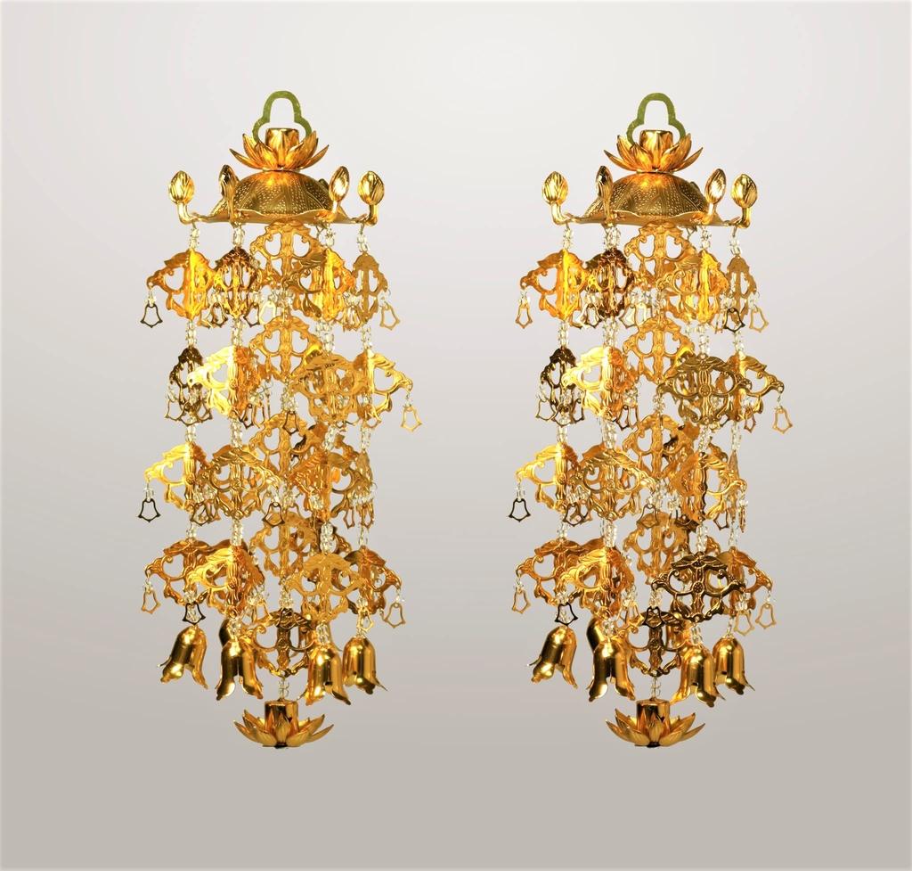 Lotus Hats Aluminum Gold Plated Yoraku Shiratama Kyoto Buddhist Altar Isemura (Yoraku) (1 Pair) (Large (No. 5))