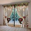 2pcs/Set Festive Red Christmas Ball And Green Leaf White Snow Pattern Print Curtains - Perfect For Living Room, Bedroom, Kitchen