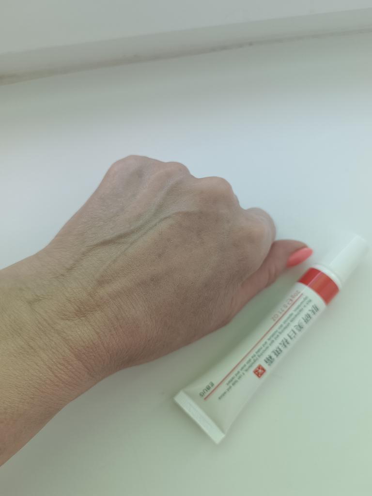 Soft and pleasant consistency, very thin nozzle on the tube allows for precise application. The effect is not yet clear, I've only used it twice, no irritation, no smell. But for a visible effect, more time is probably needed