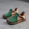 Johnature Genuine Leather Mixed Colors Sandals Round Toe Hollow Retro Style Women's Shoes
